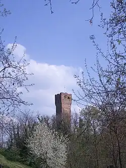 The tower is all that remains of Castiglione Castle, built in the 11th century and disappeared along with the village of the same name towards the end of the 16th century.[1]