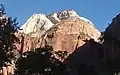 Castle Dome is a 7,054-foot (2,150 m) elevation Navajo Sandstone summit located in Zion National Park, in Washington County of southwest Utah, United States.[2] Castle Dome is situated northwest of Zion Lodge, towering 2,800 feet (850 m) above the lodge and the floor of Zion Canyon. It is set on the west side of the North Fork Virgin River which drains precipitation runoff from this mountain. It is wedged between Behunin Canyon and Heaps Canyon, with the popular Emerald Pools set at the southeast foot of this mountain. Its neighbors include Mount Majestic, Cathedral Mountain, The Great White Throne, Red Arch Mountain, Mountain of the Sun, and Lady Mountain. This feature's name was officially adopted in 1934 by the U.S. Board on Geographic Names.[2]