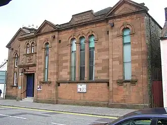 Castle Douglas Town Hall was built in 1863 to the designs of Dumfries architect James Barbour.[4] St John the Evangelist Catholic Church was built in 1867 by the London architect George Goldie. It is a Category B(S) listed building.