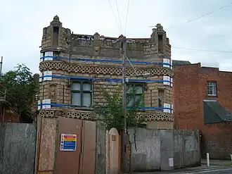 The house was built in 1851 for William Ackerman.[2] Much of the building is made of brick but it was one of the first buildings to make extensive use of Portland cement for pre-cast concrete.[3] The house is two storeys high and designed to look like an ornate Tudor gatehouse. Bays to the sides of the building form stairwells.[2] The building includes many ornamental, and some structural uses of concrete demonstrating "an innovative interpretation of traditional masonry features in concrete".[4] It was designated as a Grade II* listed building on 16 December 1974.[1] Inside, the building includes more concrete features, such as the staircase, the handrails and the window frames.[2]