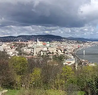 Royal Palace as seen from Gellert Hill, with Taban and Bethlen Court in the foreground. -