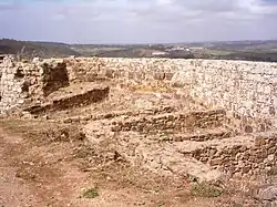 The polygonal irregular plan is defined by the walls, reinforced by two towers on the north and southern ends of the structure.[1][2] The height of the walls vary between three and five metres in height, while the structure is approximately 1.5 metres thick.