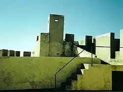 Following the 26 August 1931 revolt, the revolutionary airman José Manuel Sarmento de Beires (who along with António Jacinto de Silva Brito Paes, had completed the first aerial flight from Lisbon to Maucau on 2 April 1924) left the air base at Alverca, to bomb the fortification.[1] He failed in this attempt, with his bomb falling in the town square (today Almada Velha), causing the death of three people and injuring many onlookers, including children flying kites in the vicinity.[1] The name of the square was later referred to as the Largo das Vitimas (square of the victims) on 26 August 1931, with an inscription inscribed on a plaque to mark the tragic event and its victims.[1]