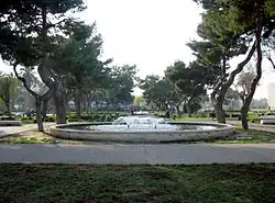 The castle gardens, named after the Cervi Brothers, extend on all sides around the castle, except along the entire northern front, located near the sea. These underwent restoration works aimed at upgrading the state of the places and the lighting system, to be transformed into a park with equipped areas, and after two years, on December 7, 2002, they were returned to the citizens of Barletta, who made them a focal point of the historic center.[2][3][90] Near the main entrance to the gardens, located in axis with the ravelin, is the historic ornamental fountain, strongly desired by the soldiers of the Military District and inaugurated on November 11, 1941. Left unused and then partially destroyed after the wartime episodes on June 12, 2004, the fountain was reconstructed and reactivated, partly due to painstaking restoration work on the stone blocks, thus fulfilling its function as a drinking water distribution point.[91]
