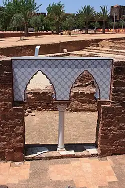 In excavations beginning on 13 August 2005 and lasting into 2006, archaeologists Rosa and Mário Varela Gomes brought light onto the vestiges of the Muslim ruins, and in particular the 11th century governors palace, occupied by Al-Mutamid (from designs of polychromatic stucco).[1][2] During the construction of the tea house, vestiges of another building, that was occupied by the Infante Henry, along the southwest of the military square, near the walls.[2] In March 2005, a risk assessment map for the zone was completed for the principal entrance-way by the DGEMN. This resulted in a proposal by the IPPAR and Direção Regional de Cultura de Faro to expand the zone of protection to include the walls and Almedina Gate, on 12 June 2008, and approved on 1 October 2008 by the IGESPAR.[2]