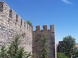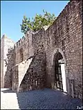 From the conquest by the Christians, a new constructive stage took place, giving it the oval plant still identifiable today, which, in the Low Middle Ages, reached about five hectares, a considerable surface for the time and which attests to the importance of the settlement. From this period, interventions carried out under the reigns of D. Afonso III and Denis of Portugal are noteworthy, believed to date from the latter the remains identified in the grounds of Pensão Castelo, as well as the original configuration of the D. Manuel Gate, in a broken arch still in Gothic style. In the passage to the Modern Age, this door became the main axis of passage between the interior and exterior of the walls, which is why the arms of this sovereign are inscribed on it. The fence then had 7 doors: Fernão Mendes, Mouraria, Postigo, Feição, Vila Fria, D. Manuel and Porta Nova.[2]