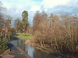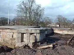 Other than a small park featuring the landscaped fish pond and a stone bridge (1833, Category B listed)[6] which once formed the driveway to the mansion, and the entrance gateways which are sited to the north-east on the edge of Rutherglen,[19] the accompanying stables block (built 1794, designed by David Hamilton, also Category B listed) is the main surviving legacy of the grand estate.[14] After being damaged by a fire in 1994[20] and left abandoned,[9] it was restored in 2007 (with the project winning awards)[21] and now contains the local housing offices, community facilities and a nursery.[22][23]
