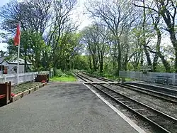 Castletown Railway Station (Manx: Stashoon Raad Yiarn Valley Chashtal) is an intermediate station on the Isle of Man Railway on the Isle of Man forming part of sole remaining section of the once extensive network that operated across the island. The station is the busiest of the railway's intermediate stations, being the closest to a number of local visitor attractions. In peak season service trains often pass here, making the station one of the railway's more active stopping places. The station occupies a site within walking distance of the main town and is in close proximity to the local playing fields.