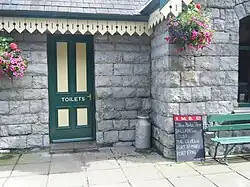 The station was extensively renovated in the winter of 1993/1994. A new peaked roof was constructed over the gentlemen's toilets, and the old wooden canopy removed and window apertures converted into archways. At this time the station master's office was halved in size to create a booking hall and a new internal ticket hatch installed, the original being blocked off the waiting room was also reopened, having been closed for over 30 years. The overhauled station was reopened with suitable ceremony later that year by local politician Phil Kermode who at the time was the minister with responsibility for the railway. During the winter of 2012 the partition in the booking hall was removed, recreating the full sized office, and the fireplace reinstated; the original ticket hatch was also brought back into use. In the summer months the station building is adorned with flower baskets and period features such as milk churns (a nod to the station's former importance for handling goods and freight traffic), reproduction notice boards and enamelled signage reinstated on the exterior walls based upon period photographs. This work was carried out by the Friends Of... group.