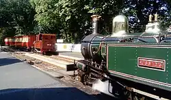 On 2 August 1972 members of the Royal Family boarded a special train at the station accompanied by dignitaries and officers of the Railway Company; accompanying Her Majesty The Queen and Prince Philip were three of their children, Princess Anne, Prince Andrew and Prince Edward as well as Lord Mountbatten. They were introduced to key members of staff by lieutenant governor Peter Stallard, including the chairman William Lambden, chief engineer Donald Shaw and the locomotive crew and train staff. The train was hauled by No.13 Kissack and the party travelled in Royal Saloon F.36 (now on display in the Isle of Man Railway Museum in Port Erin) into Douglas Station, passing No.4 Loch where it was acting as standby locomotive. This represented only the second time the railway had conveyed royalty, the first being The Queen Mother who travelled on the Peel Line in 1963 using the same carriage by hauled by No.11 Maitland. On arrival in the capital Her Majesty also travelled on the Douglas Bay Horse Tramway riding tramcar No.44 which thereafter became known as the Royal Tram, painted in a patriotic red, white and blue scheme for the occasion.