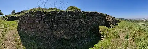 The Castro of Chibanes is located in the Arrábida Nature Park, on the Serra do Louro (Louro Hill), in the municipality of Palmela in the Setúbal District of Portugal, about 25 km (16 mi) south of the capital of Lisbon, which can be seen from the site. The Castro, or hill fort, is located at the top of the hill, naturally defended by a scarp to the south. It covers about one hectare and was first occupied in about 2900 BCE, during the Chalcolithic or Copper Age. It is registered as a Zona Especial de Protecção (a Special Protection Area) and also classified as a Sitio de Interesse Público (Site of Public Interest).[1][2][3]