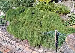 Two prostrate forms are commercially available: Casuarina 'Cousin It' is a cultivar arising from material from Booderee National Park on the New South Wales south coast collected in 1989 and named for its resemblance to Cousin Itt,[23] and C. ‘Kattang Karpet’ is propagated by the Australian Botanic Garden from material collected at Kattang Nature Reserve on the New South Wales mid-north coast in 1998.[24]