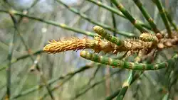 Casuarina glauca, commonly known as swamp she-oak, swamp buloke, swamp she-oak, marsh sheoak, grey she-oak, grey she-oak,[2] native pine,[3] or guman by the Gadigal people,[4] is a species of flowering plant that is endemic to eastern Australia. It is a dioecious tree that often forms root suckers and has fissured and scaly bark, spreading or drooping branchlets, the leaves reduced to scales in whorls of 12 to 20, the fruit 9–18 mm (0.35–0.71 in) long containing winged seeds (samaras) 3.5–5.0 mm (0.14–0.20 in) long.