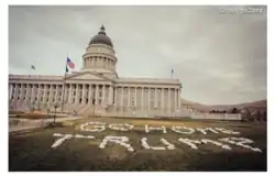 In 2017, her image of "Go Home Trump" went viral. She organized over 100 people dressed in white on the lawn of the Utah State Capitol and released it when Trump was landing in Utah. The AP picked it up and it went internationally viral by the time Trump's pane was landing in Utah.