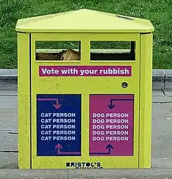 The terms cat people and dog people refer to a person's domesticated pet animal preference. Through research completed at research institutions, it was found that there were differences in character and behaviour between those who prefer cats and those who prefer dogs. It was also found that some people base a significant portion of their identity around their affinity for either cats or dogs. This builds on the perceived dichotomy between cats and dogs as pets in society.[1][2] In some cases, the two terms refer to people's self-identification, regardless of what pets they actually own, if any.[3]