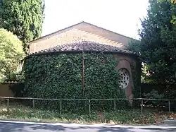 The basilica was built at the start of the 5th century on the site of an earlier small sanctuary by Ursus, Bishop of Nomentum, under pope Innocent I.[3] The basilica also has an entrance hall, two rooms for the tombs of the three martyrs, and several funerary structures. Both catacombs and basilica were badly damaged in the Gothic War.[4]