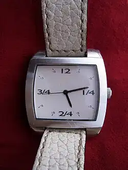 The Catalan time system is the traditional manner in which to tell time in Catalan, and it is exclusive to this language.[1] Telling the time through this system works by dividing it in fractions of a quarter and half a quarter of an hour. Hour-fractions refer to the starting hour, taking into account that when a clock reaches a whole hour (e.g. three o'clock) it actually indicates its end.
