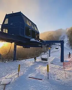 Cataloochee Ski Area is a ski area in the eastern United States in southwestern North Carolina, near Maggie Valley. With eighteen ski slopes and trails, approximately 44% are rated beginner, 39% intermediate, and 17% advanced. Its top elevation is 5,400 feet (1,646 m) above sea level, yielding a vertical drop of 740 feet (226 m). The slopes are accessed by three chairlifts and two carpet lifts.