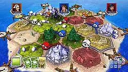 Teuber has fully endorsed the Big Huge Games version, claiming that the game has exceeded his expectations and noting that he himself has lost several games in a row to the AI.[3] The rules of the computerized version are faithful to the original, with one exception suggested by Teuber himself; the number of resource cards held by players is not limited to the number of resource cards which came with the board game. This was the original design intent, but one which couldn't be implemented due to the necessity to include only a finite number of physical cards in game boxes.[4]