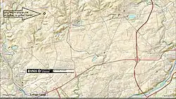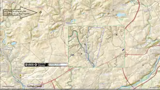 Catasauqua Creek is an ENE–SSW oriented creek draining 6.6 miles (10.6 km) (straight line distance)[3] from springs of the Blue Mountain barrier ridge several miles below the Lehigh Gap in the Ridge-and-Valley Appalachians located upriver and opposite from Allentown in Lehigh and Northampton counties in the Lehigh Valley region of eastern Pennsylvania.