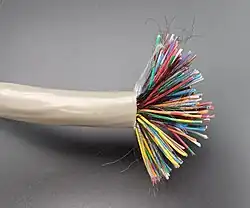 Category 3 cable, commonly known as Cat 3 or station wire, and less commonly known as VG or voice-grade[1] (as, for example, in 100BaseVG), is an unshielded twisted pair (UTP) cable used in telephone wiring. It is part of a family of standards defined jointly by the Electronic Industries Alliance (EIA) and the Telecommunications Industry Association (TIA) and published in TIA/EIA-568-B.[2][3]