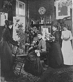 From 1890 on her pictures were shown in exhibitions, especially in Berlin, Dresden and Munich;[1] she also took part in the 1893 World's Fair in Chicago.[5] The works quickly became popular and Klein soon belonged to the circle of the most popular still life painters.[6] Her works were then represented in well-known art collections and the royal palaces of Berlin,[1] and the German Emperor Wilhelm II also bought paintings by the artist.[7] At about the same time, Klein ran a much-visited student studio.[1] The participants from all over the world included, for example, Maria Marc,[8] Maria Strakosch-Giesler,[9] the Baltic German Hildegard von Haken[10] and the American Teana McLennan Hinman.[11]
