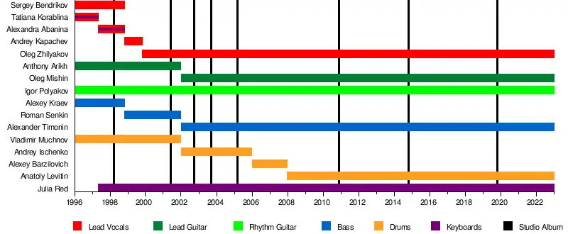 | Members | Oleg Zhilyakov Oleg Misson Igor Polyakov Aleksandr Timonin Julia Red Anatoliy Levitin |