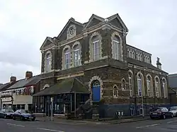 A chapel was originally set up in 1862, being located on Cathays Terrace, near the present site. At the outset, it had a congregation of only six people. This building was sold in 1883, and was replaced by a school chapel. The adjoining church followed in 1890. Its services were well-attended, with evening congregations of over 900 worshipers. The church originally had elaborate, bulbous turrets on its towers, though these are no longer present. The organ dates from before 1914. A modern glass porch was added in the early 1990s.[1] In 2006, the building was re-ordered horizontally, with the sanctuary at the top, a large hall on the upper ground floor and three meeting rooms below this.