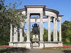 - ^ Hilling does make some criticisms of the 21st century development of the site: in addition to expressing concern as to the random and incoherent siting of the memorials; he notes the visual impact caused by the removal of many trees from the park and the proliferation of television aerials and telecommunications masts on many buildings; and questions the city council's decision to operate a winter funfair on the City Hall Lawns, "resulting in a visual blight for more than four months each year".[28]