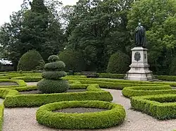 The garden was originally known as Druidical Gardens, but the name Gorsedd Gardens was later adopted. The 2 acres (0.81 ha) garden has as its centrepiece a stone circle constructed in 1899,[35] when the National Eisteddfod of Wales was held in Cardiff. The stones were originally erected elsewhere in Cathays Park for the National Eisteddfod of 1899.[35] They were re-erected in the garden in 1905.[35] The garden's name refers to the Gorsedd of Welsh Bards, the ceremonial order that governs the Eisteddfod. Work on the landscaped gardens began in 1904 and officially opened in July 1910 by the Lord Mayor.[40][35] It is laid out with lawns, and tree and shrub borders and hedges.[35] The gardens has statues of subjects including David Lloyd George and Lord Ninian Crichton-Stuart.