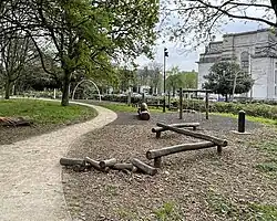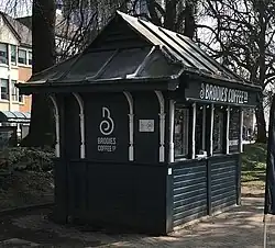 Parc Mackenzie, which lies between the University of Wales main block and the National Museum, is the newest area of green space to be created within the park. Opened in 2023, it commemorates Millicent Mackenzie (1863–1942), the first woman professor in Wales.[51][52] At the Alexandra Gardens end of the Parc Mackenzie plot stands a Grade II listed public convenience.[53] Long disused and derelict, in 2024 planning permission was granted for its conversion into a cafe.[54]