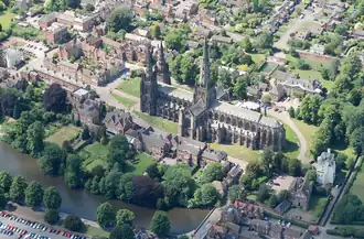 The Cathedral Close is a historic set of buildings surrounding Lichfield Cathedral in Lichfield, England. The Close comprises buildings associated with the cathedral and the clergy which encircle the cathedral. The Close grew up around the cathedral during medieval times and today some medieval buildings remain in the Close but the majority of buildings date from the 17th, 18th and 19th centuries.