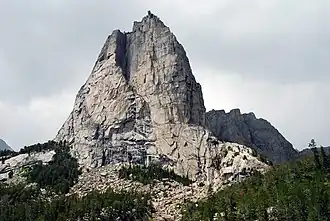 Cathedral Peak is a (12,326-foot (3,757 m)) mountain located in the southern Wind River Range in the U.S. state of Wyoming. Cathedral Peak is 1.5 mi (2.4 km) southwest of Mount Chauvenet in the Popo Agie Wilderness of Shoshone National Forest.[3]