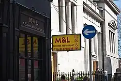 On 18th century maps of Dublin, this street is named Elephant Lane. McCready attributes this to a corruption of Mellifont Lane, Menagerie Lane, or due to the presence of a tavern on the street with a sign featuring an elephant.[2] According to the 1850 New City Pictorial Directory, besides four vacant buildings, Elephant Lane's occupants included, a plumber, locksmith, job coach establishment, an ivory turner, two booksellers and two vintners.[3] The street was later known as Tyrone Place from 1870 due to it leading to Tyrone House,[4] and was renamed Cathedral Street in 1900.[5]