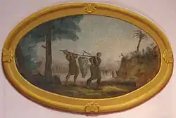 The sanctuary has seven rather valuable seccos on its walls. The paintings were created by György Révész during the 1868 renovations, when the church was re-shaped in a Romantic style. One oval shaped mural can be found below and above each window, depicting scenes from the Old Testament. The sanctuary's seventh secco is the triangle shaped Eye of Providence painting which can't be seen from the altar. The only place where the secco is visible, is the organ gallery on the western side of the cathedral. The reason is that the Eye of Providence secco was painted to a wall surface high above the ground level of the altar, and it is parallel to the iconostasis, thus unseen from the sanctuary. The topic and the composition of the three upper seccos appear also on the Royal Doors of the iconostasis: The scene of Cain murders Abel is above the Northern window, the Noah's sacrifice secco is above the Southern window, and the Binding of Isaac scene was painted on the upper part of the apse. The seccos below the windows talk about stories from the Old Testament too, but instead of the upper sacrifice related murals, these are connected to divine prophecies. Below the Northern window, and above the entrance from the sacristy, is the mural of the Promised Land. It shows the land of Canaan, God's reward to Abraham and his descendants if they keep their faith. The lower secco of the Southern wall is called Brass Serpent, and it tells us the story of Moses who mounted a serpent of brass on a pole to cure the Israelites from the bite of the snakes. Later this story was explained in the Gospel of John as a reference to Jesus.[30]