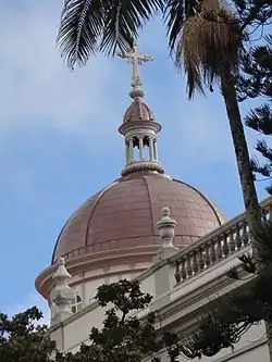 The Cathedral of San Cristóbal de La Laguna is located in the city of San Cristóbal de La Laguna (Tenerife, Canary Islands, Spain). In the cathedral lie the remains of Alonso Fernandez de Lugo, conqueror of the island and founder of the city.[6] The cathedral is located in the historic center of the city of La Laguna, and was declared a World Heritage Site in 1999 by UNESCO.[7] The cathedral contains elements of several architectural styles including Neoclassical and Neo-Gothic. The Cathedral of La Laguna is best known for its Neoclassical facade, inspired by the Cathedral of Pamplona, and its dome, which prominently dominates the cityscape.[8][2]