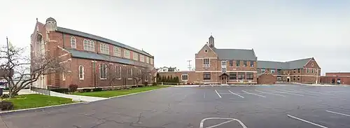 O'Neill was replaced by the Rev. John Hackett, who thought he would spend two years here but served as pastor for 30 years.[1][2] He had St. Augustine High School built in 1926. The parish plant was moved from West Kalamazoo Avenue to West Michigan Avenue. In 1937, the parish became part of the newly created Diocese of Lansing. Hackett was named the Vicar General of the diocese. The grade school building was added to the high school building in 1939. Construction of the current church began in 1950 with the laying of the cornerstone on August 13. Lansing Bishop Joseph H. Albers consecrated it December 4, 1951.