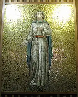 Marble figures of St. Joseph and of the Blessed Virgin Mary stand in wall niches in the cathedral. A figure of the Sacred Heart of Jesus stands at the Blessed Sacrament Chapel to the left of the nave. Each of these figures is five feet tall and is made of unpolished travertine. The sculptors' tool marks are still visible in the figures. There are fourteen polished marble Stations of the Cross hanging around the seating area. There are three mosaics—the Infant Jesus of Prague, Our Lady of Perpetual Help, and St. Anne. The statuary, mosaics, and stations were imported from Italy for the cathedral.