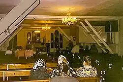 There are benches in the main aisle and confessionals in the side aisles. The confessionals contained benches until the closure of the church in 1938. After its reconstruction, the left side was reserved for women, and the right for men.[12] Both side aisles are separated from the main aisle by pillar files, consisting of four columns and two half columns. The columns and the roof are painted in white, and the walls in cream. The floor is constructed from light and dark grey marble slabs in a chequered pattern.[12]