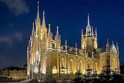 The Cathedral of the Immaculate Conception of the Holy Virgin Mary is a neo-Gothic Catholic church at Moscow's center, that serves as the cathedral of the Archdiocese of Moscow. Located in the Central Administrative Okrug, it is one of three Catholic churches in Moscow and the largest in Russia.[1]