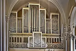 The present pipe organ is one of the largest in Russia and the third since the church's foundation. The first organ was taken by the state in 1938 and the second, an electronic organ with 60 stops, was installed as part of the renovations in 1999. It was donated by the American charity "Aid to the Church in Russia", headed by priest Marcel Guarnizo, who received consecration as a deacon during the renovation in 1997. The electronic organ was replaced by a pipe organ during 2002–2005.[13][14]