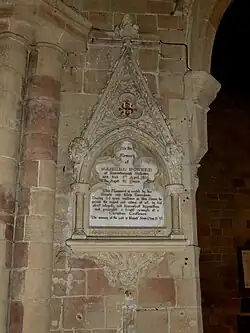 In November 1859, a tender of £18 from "Mr Mawer" was accepted for a memorial tablet dedicated to Samuel Powell. Charles Mawer was only 20 years old and not yet able to be a partner in the company. William Ingle was 30 years old, but his name was not mentioned for the tender, so it must have been still Catherine Mawer's company.[53] In 1860 the memorial was "placed on the south west pillar of the central tower of the parish church", and the Leeds Mercury commented:[54]