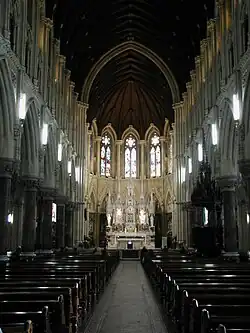 The Dioceses of Cloyne and Ross were separated in 1850. Following the relaxation of the worst elements of the Penal laws, "...the diocese, despoiled of all its ancient churches, schools, and religious houses, had to be fully equipped anew. About 100 plain churches were erected between 1800 and 1850."[5] Following the separation of Ross, Bishop William Keane planned a cathedral for Cobh to replace the inadequate parish Church of the time.
