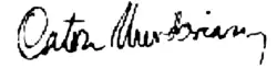 The Theodorian brothers were orphaned in 1879, when Ion died of chickenpox contracted on a political tour—as recounted in Caton's memoir, Prima durere ("The First Pain").[11] Mariu was adopted by his uncle Eugeniu and his aunt Sultana,[12] while Caton began his education at the private C. Dima Popovici Institute in his native city, where his mother was the principal.[1] He then attended Craiova's D. A. Sturdza College (1881–1885),[1] and, according to his own testimony, was briefly colleagues with writer Traian Demetrescu.[13] From 1885 to 1887, he attended military high school.[1] His uncle wished for him to become an officer, but Caton ran away from school, allegedly spending some time studying in Paris,[14] then working for Teodor Popescu's theatrical troupe as a prompter, copyist and extra.[1] He secured his first government post in 1888,[1] possibly through Carada's contacts.[14]