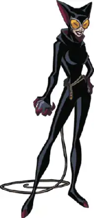 - Catwoman appears in The Batman (2004), voiced by Gina Gershon.[15] This version is a charity fundraiser in her civilian identity. Furthermore, her design is loosely based on the then-current costume used in the comic books, though with blue eyes instead of green.