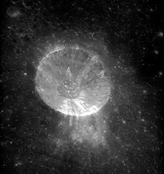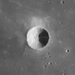 Cauchy is a small lunar impact crater on the eastern Mare Tranquillitatis. It was named after French mathematician Augustin-Louis Cauchy.[1] It is circular and symmetric, with a small interior floor at the midpoint of the sloping inner walls. Due to the high albedo of this bowl-shaped formation, it is particularly prominent at full Moon.