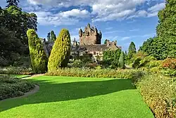 The castle is known for its gardens, which include the Walled Garden (originally planted in the 17th century), the Flower Garden (18th century),[2] and the Wild Garden (added in the 1960s). In addition, the castle grounds boast a wood featuring numerous species of trees (as well as over 100 species of lichen).