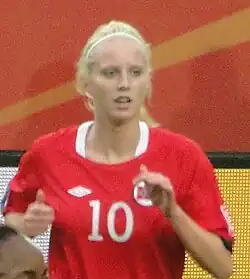 In June 2009 she was called up to the national team for the European Championships,[2] and in the second game, against Iceland, she was the matchwinner with her goal before the break.[5] She scored Norway's third goal in the quarter final against Sweden which Norway won 3–1.