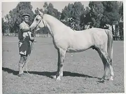 After moving to Oranje Farm,[4] in the Middelburg District, in 1950 she bought the stud stallion Boaz, a pure bred Arabian imported from England. In 1953 she won the Victor Ludorum for the most points at the National Arabian Horse Championships of South Africa held that year at Middelburg.