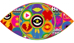 During the 20-second teaser aired in November 2023, it depicted the basic eye logo template similar to the one used for the civilian series teaser, however featured a star in the centre instead. The show's narrator Marcus Bentley teased the series with the tagline "Celebrities... Big Brother is coming to get you."[24] On 9 February 2024, the official eye logo for the series was revealed during that evening's episode of Love Island: All Stars on ITV2.[25] The logo uses the same design as the twentieth civilian series, but instead features a "star" in the centre and several of the emojis have been replaced with a trophy, champagne glasses and a camera respectively.[26]